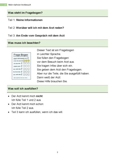 Fragebogen zur Vorbereitung eines Arztbesuches in leichter Sprache