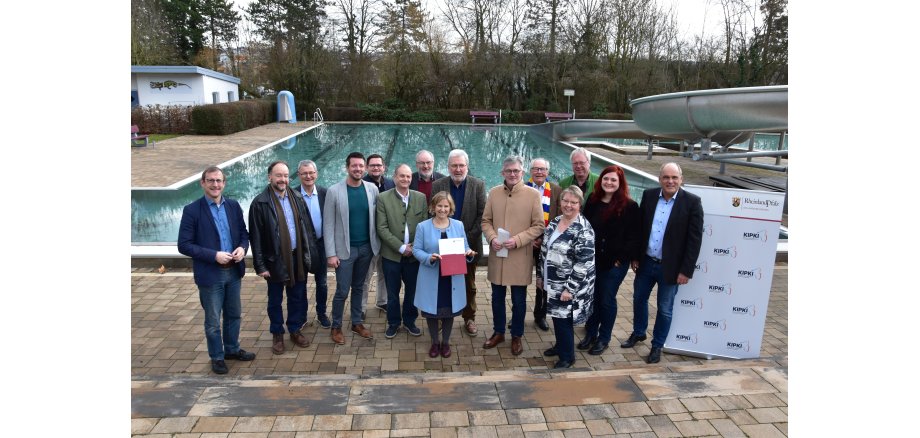 Etwa die Hälfte der Fördersumme (493.965,61 Euro) fließt in die energetische Teilsanierung des Rheinhessen Bads in Nieder-Olm. Mit der anderen Hälfte werden weitere elf Teilprojekte finanziert.