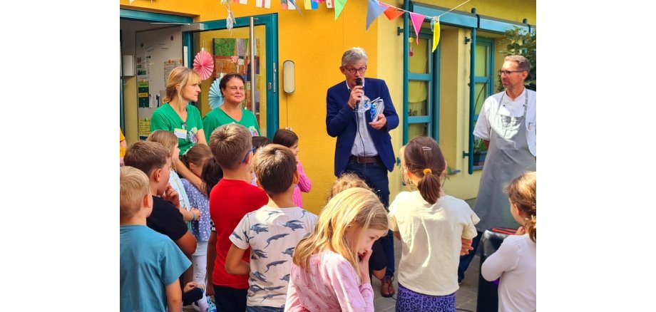 Diese Entwicklungen, aber vor allem auch das Engagement und die Hingabe einer Vielzahl von Menschen, Erzieherinnen und Erziehern, Familien sowie Verwaltungsmitarbeitenden würdigten bei der offiziellen Begrüßung auch die Kita-Leiterin Tina König sowie Bürgermeister Ralph Spiegler.