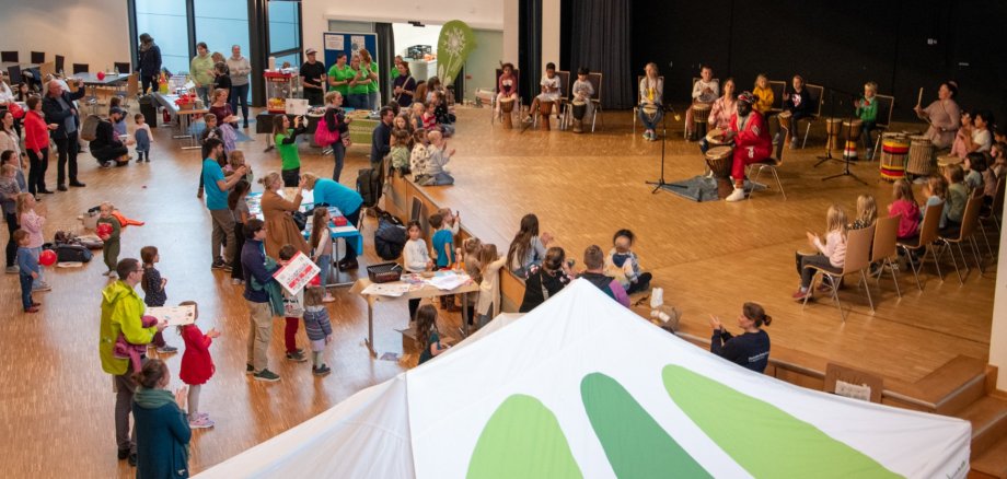 Die Botschaft, dass Kinderrechte Bausteine der Demokratie sind, ist das, was das Team der Kita-Sozialarbeit Nieder-Olm in die Welt tragen will. Aus diesem Grund wurde am 27.09.2025 in der Ludwig-Eckes-Festhalle bereits zum dritten Mal das Fest gefeiert, bei dem die Situation der Nieder-Olmer Kinder aber auch die aller Kinder der Welt im Fokus steht. Spaß hatten die etwa 120 Kinder im Kindergarten- und Grundschulalter, was bei der Show am Schluss der Veranstaltung nochmal ganz deutlich wurde: Auf der Bühne zeigten die Kinder, animiert von Richard Berninger (Clubtanzsschule Willius-Senzer), was sie in den Workshops des Nachmittags gelernt haben. Anschließend trauten sich ebenfalls ganz viele Kinder, ihre neuerworbenen Fähigkeiten im Umgang mit Afrikanischen Trommeln zu präsentieren und unterstrichen damit die Aussage: Kinder verschaffen sich Gehör!